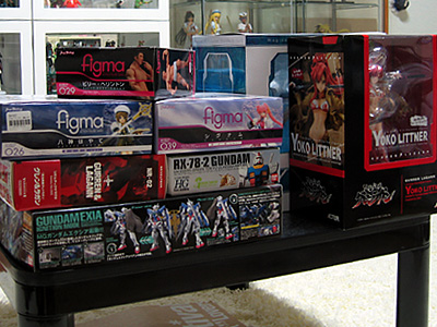 画像には写ってないけど奥にはミクとか誘惑タマ姉とかリィンフォースとかも。購入後1年以上経過しているミクはいい加減開けていきたい。