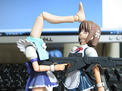 胴体を組み終えたところで、何となくメイド服に見えたので、たまらんの腕とパンチーラの頭を付けてみた。